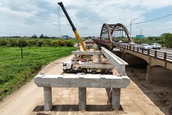 Colocaron la primera viga en el nuevo Puente Carretero. Foto: Fernando Nicola