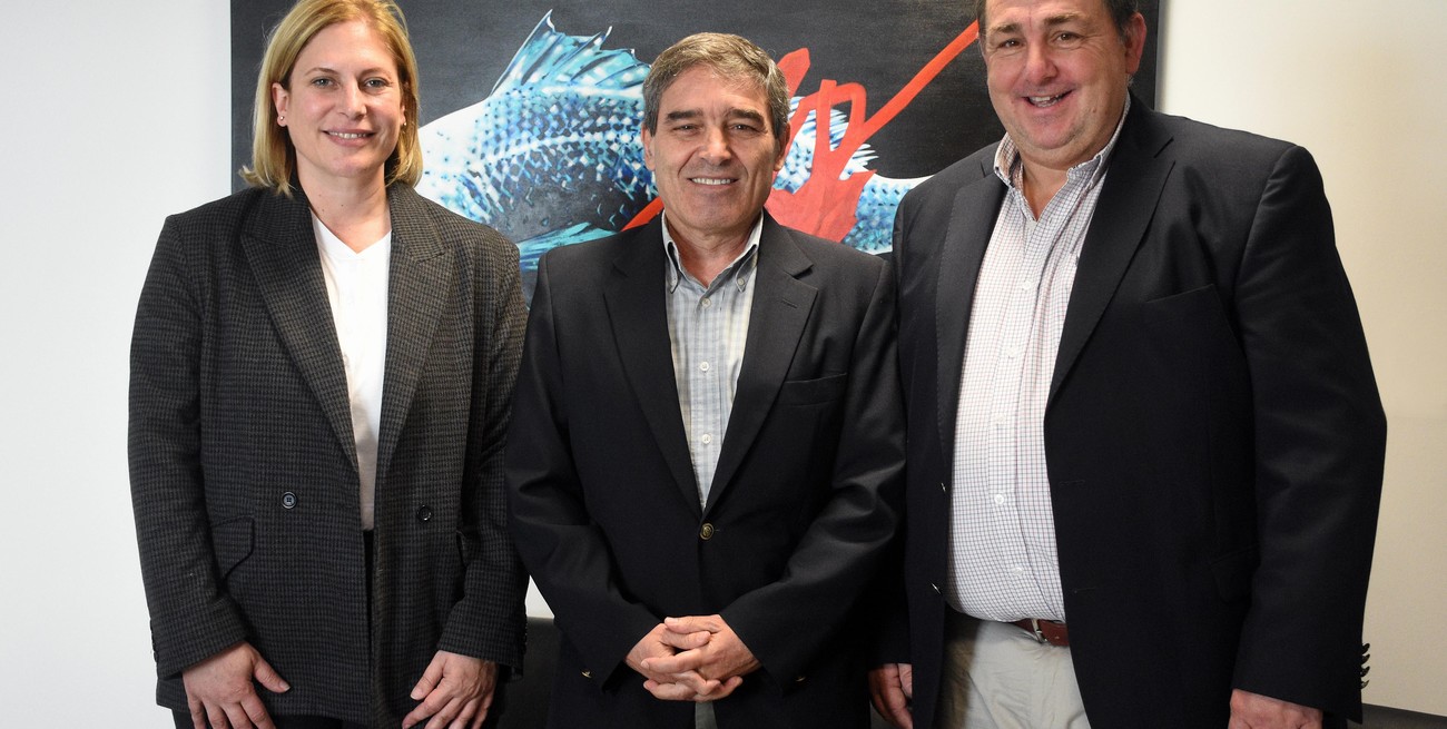 Gisela Scaglia (candidata a vicegobernadora junto a Maximiliano Pullaro), Fernán Quirós y Juan Pablo Poletti, durante la visita a El Litoral. Crédito: Pablo Aguirre
