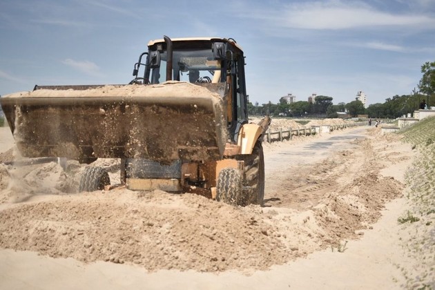En esta línea, una retropala trabaja en el juntado de la arena que está en el camino bajo que tenía varios metros cúbicos y una parte será trasladada hasta el Parque del Sur porque -en forma paralela- se realizan obras en ese espacio verde de la ciudad. Máquinas más grandes acomodarán la arena hasta llegar a la zona del agua.