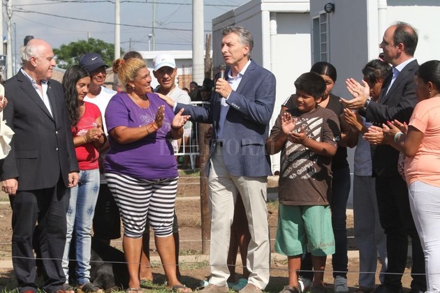 Se construyen 60 de un total de 280 casas para inundados. El gobernador Lifschitz y el intendente Corral acompañaron al presidente de la Nación.
