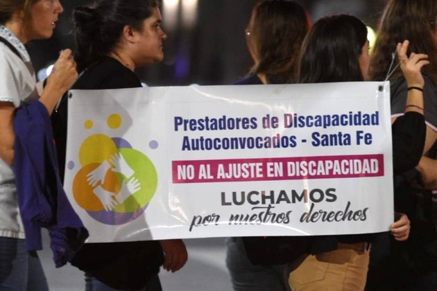 La marcha fue organizada por Prestadores de Discapacidad de Santa Fe Autoconvocados (PreDisASF), motivados por el paro nacional con acampe realizado durante los días 3, 4 y 5 de julio en el país y con la carpa blanca que cerró este miércoles en Buenos Aires.