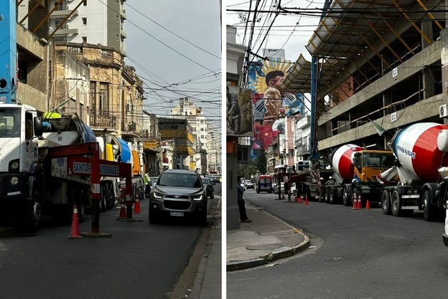 Se trata de la zona de calles Eva Perón y San Luis, donde se estacionaron dos camiones de gran porte para descargar materiales en una obra en construcción.