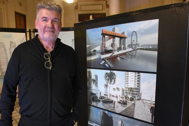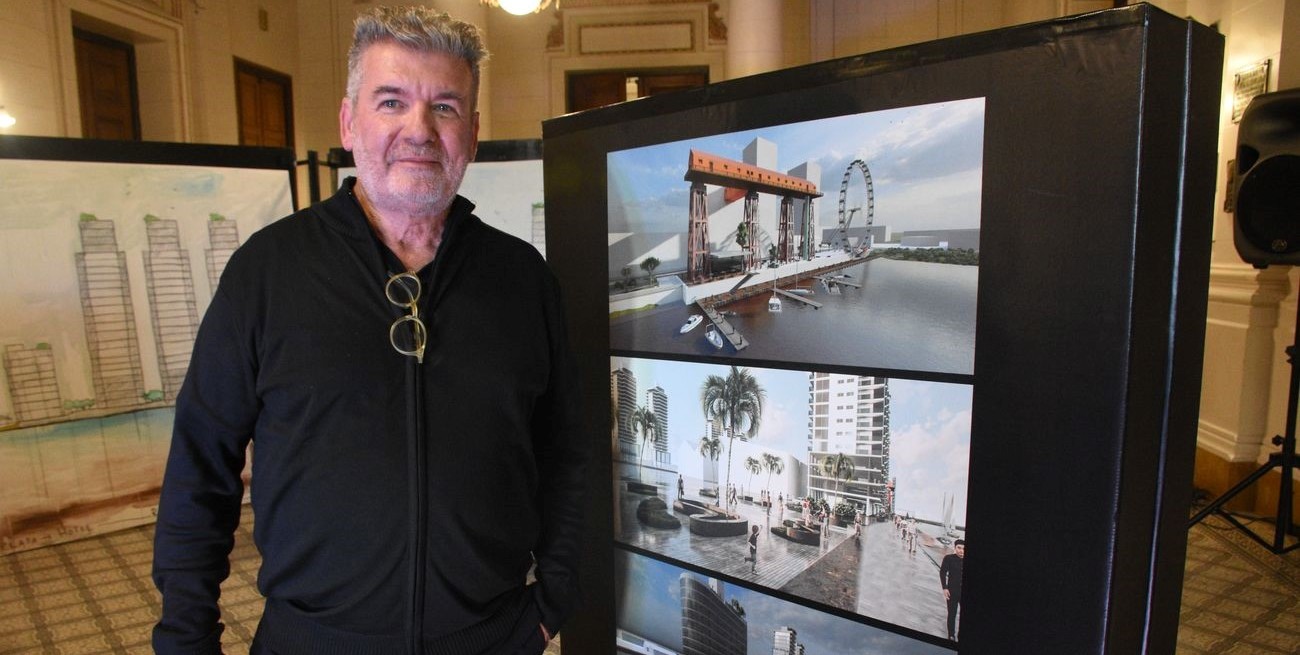 El arquitecto y artista plástico Carlos Monge abrió una muestra en el Hall de la Legislatura sobre su proyecto de ampliación y urbanización del dique 2. La premisa: convertir una zona desaprovechada en un destino turístico de primer nivel.