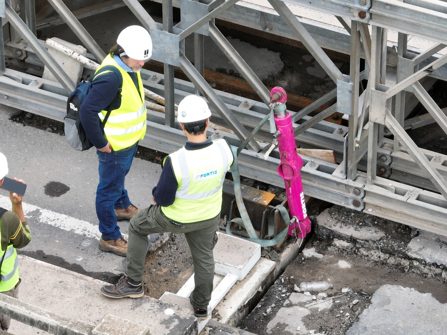 5 / 7 Los operarios usaron un gato hidráulico para las tareas encaradas desde este miércoles. Foto: Fernando Nicola