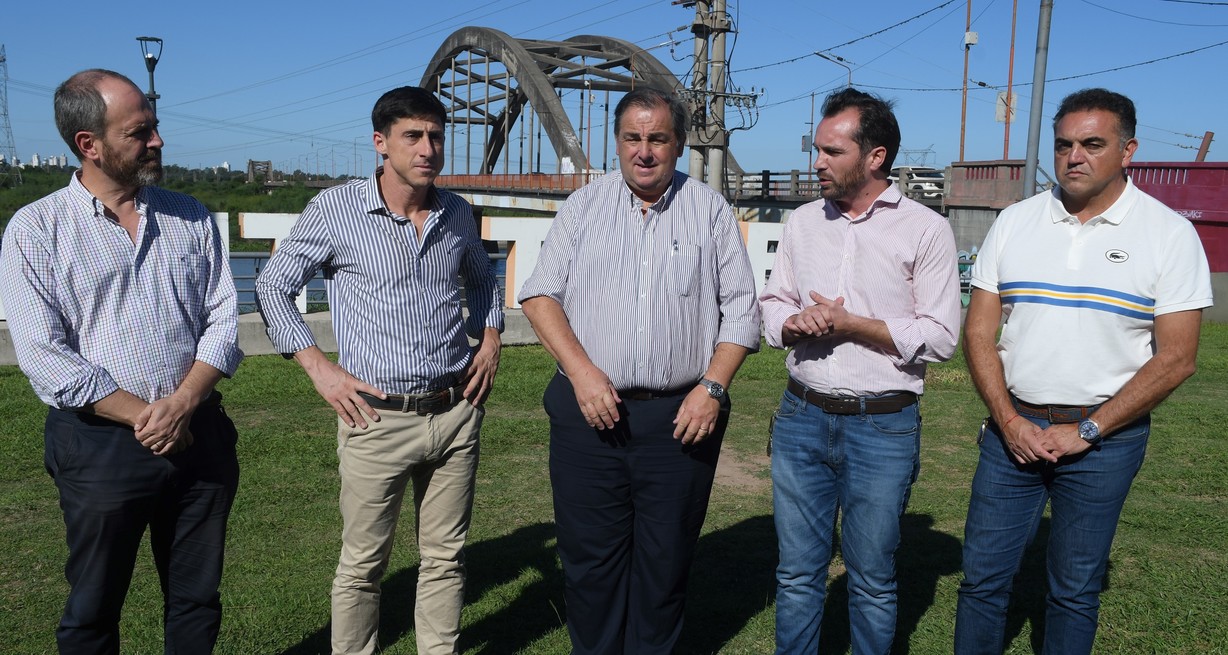 En la Plazoleta Paso del Salado, y con el puente como postal de fondo, ofrecieron una conferencia de prensa los intendentes de Santa Fe, Juan Pablo Poletti, y de Santo Tomé, Miguel Weiss Ackerley, junto con el senador provincial Julio Garibaldi. También se contó con la presencia de Ramiro Dall'Aglio, secretario de Asuntos Electorales y Vinculación Regional del Ministerio de Gobierno; y Cristian Hoffmann, presidente del Ente Coordinador del Área Metropolitana (Ecam).