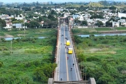 Con el obrador establecido en la cabecera este, los elementos se acopiarán en ese sector para comenzar este martes el primer montaje sobre el puente. Foto: Gentileza Vialidad Nacional