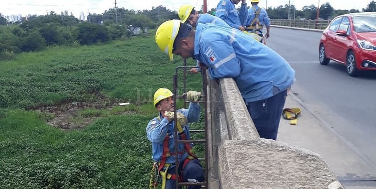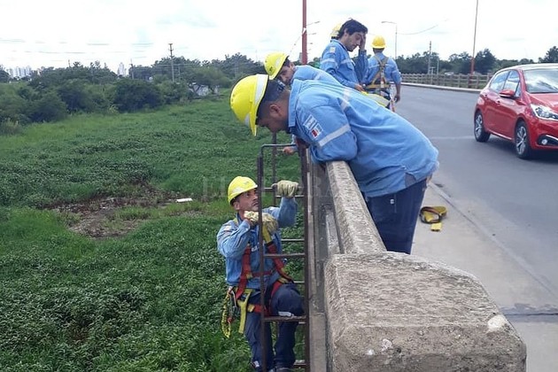 Puente Carretero: rompieron cables y los operarios "colgados" repararon el daño
