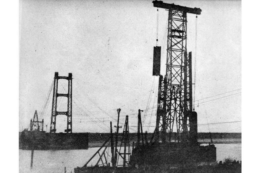 El Puente Colgante en plena construcción. Crédito: Archivo El Litoral