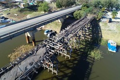 Días atrás comenzaron los trabajos de remoción del embalsado que quedó atascado en el riacho Santa Fe, al este del puente “Héroes de Malvinas” y el Puente Palito. En este marco, el municipio local dio a conocer que hará un pedido para que la histórica estructura de madera sea desmantelada.