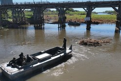 Según indicaron desde el gobierno local estiman que dos semanas las tareas de remoción en el riacho Santa Fe estarían concluidas y desde la Dirección de Gestión de Riesgo anticiparon que esta metodología de trabajo se piensa llevar a los pilotes del viejo puente ferrocarril sobre la laguna Setúbal.