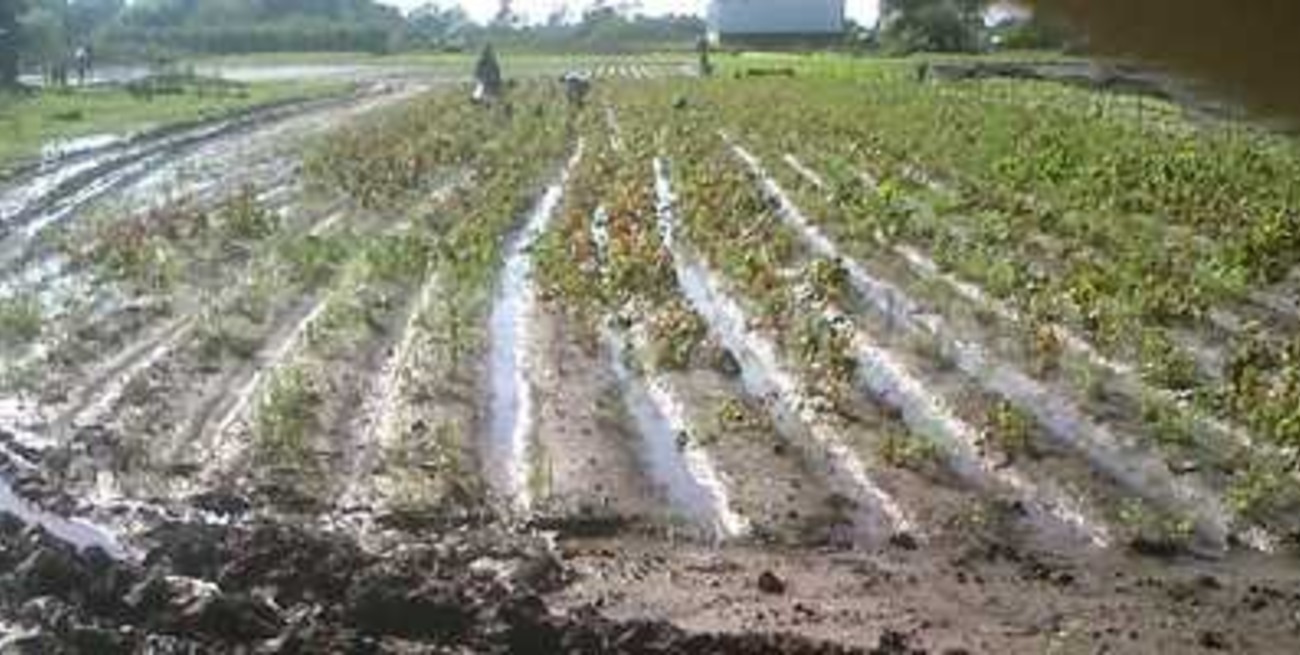 En la zona de quintas, los productores comenzaron a levantar la lechuga y acelga en un intento para que no se pierda. Todavía hay agua sobre la calzada.