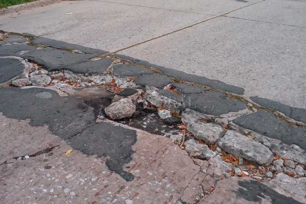 En ese sentido, el lector comentó que esa calle se llena de agua cuando llueve y perjudica el ya daño asfalto. “Aparecen los hierros que tienen las placas. Se levantó de tal manera que los autos le pegan y se empezó a romper en piedras grandes y es peor. Es una trampa, sobre todo cuando hay agua”, comentó.