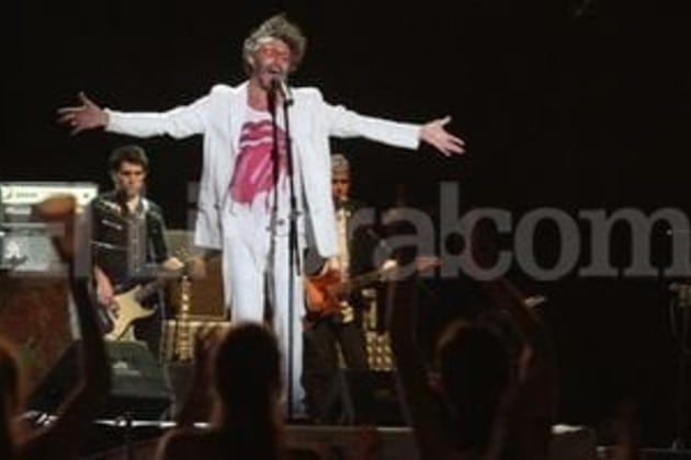 La vuelta sería de traje sport blanco y zapatillas blancos, con remera con lengua stone y gafas de marco bien rojo. La canción elegida fue “Dar es dar”, e incluiría el segundo homenaje a Spinetta, su compañero en “La la la”.