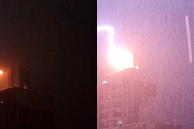 El incidente ocurrió la noche de este lunes, cuando una tormenta eléctrica de gran magnitud afectó a diversas zonas de la ciudad. El video muestra cómo un rayo impacta de lleno en la parte superior de un edificio de departamentos, generando un estruendo y un resplandor que ilumino la noche.