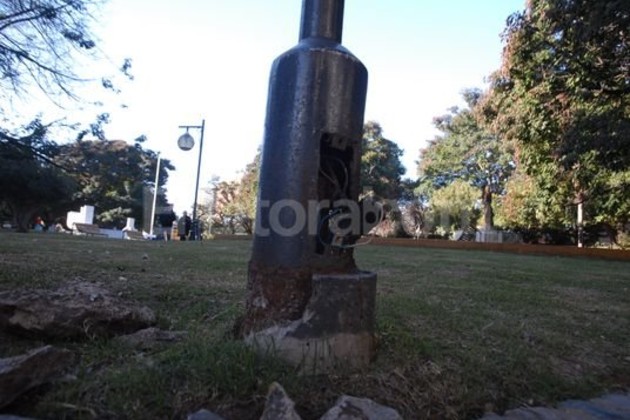 En una recorrida por el lugar, que se realizó esta semana, El Litoral detectó al menos 12 columnas de iluminación que tienen los cables al alcance de cualquiera. Las bases de las farolas están oxidadas y no cuentan con las tapas correspondientes para cubrir los cables. Y también hay roturas en los mármoles de la fuente y mucha suciedad de paloma.