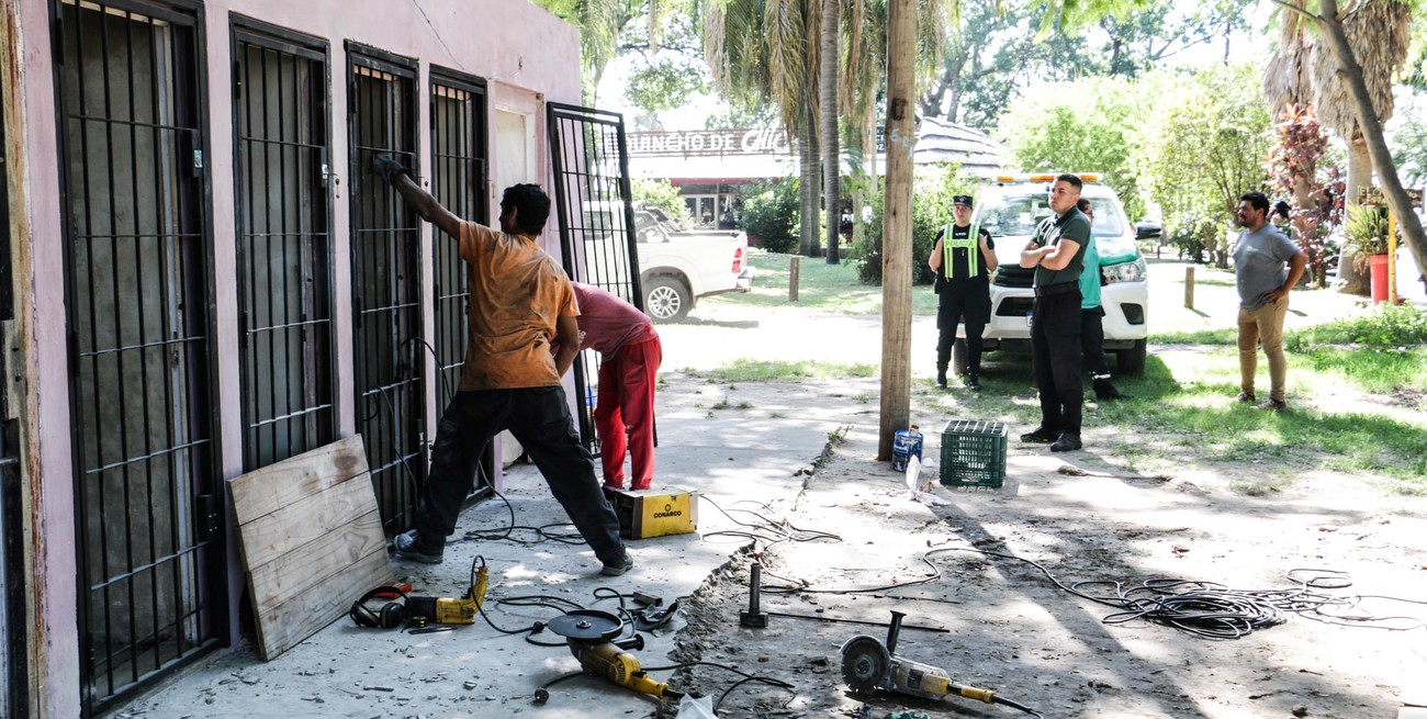 La construcción cuenta con cinco baños de uso público que habían sido usurpados. Para evitar intrusiones futuras, se colocaron puertas rejas, posteriormente se instalarán los sanitarios y las conexiones eléctricas. Por último, se realizarán tareas de pintura. Se estima que la obra esté finalizada en 10 días.