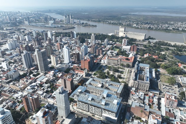 Postal aérea del macrocentro de la ciudad, con su densidad urbana. Crédito: Fernando Nicola