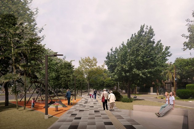 "Se incluye la resignificación del Monumento al Brigadier, sectores de juegos infantiles, iluminación general y ornamental de los espacios, incorporación de mobiliario urbano (bancos, cestos, bolardos de protección, BiciPuntos y rampas peatonales); accesibilidad (sendas podotáctiles y vados peatonales), forestación y parquizado", agrega.