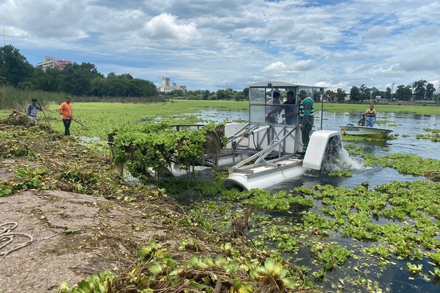 Este domingo por la mañana comenzó a trabajar en el Lago del Parque General Belgrano en el sur de la ciudad de Santa Fe una cosechadora acuática, con el objetivo de poder retirar los repollitos de agua y avanzar en el saneamiento del lago.