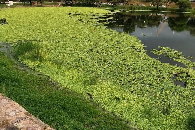 La vegetación flotante forma una alfombra verde continua que avanza sin control sobre el lago del sur de la ciudad.