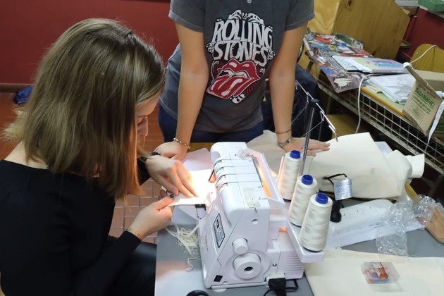 Los alumnos de la carrera de Diseño y Producción de Indumentaria del IES en pleno proceso de producción.