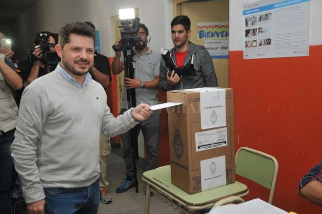 El candidato emitió su voto en la escuela Cristóbal Colón.