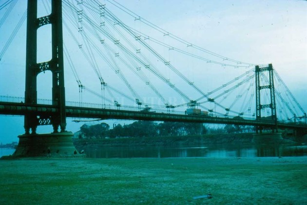“Pueden verse los pilares del Puente Colgante totalmente descalzados, con gente a su alrededor, en una foto tomada desde lo que hoy conocemos como Piedras Blancas. Si se repara en los detalles del fondo, se observan las chimeneas de Calchines, parte de la edificación del Club de Regatas y hasta el remate de la fuente del parque Oroño, la misma que hoy conocemos como la Fuente de la Cordialidad”, explica la nota firmada por Guillermo Dozo.