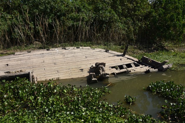 Desde allí se observan los restos de la nave de madera. Y las tortugas que se recuestan sobre cubierta a tomar sol. También hay grandes herrajes que antaño fueron máquinas del barco. Mientras que los camalotes y el resto de la vegetación natural del río dan marco a la escena que se embellece.