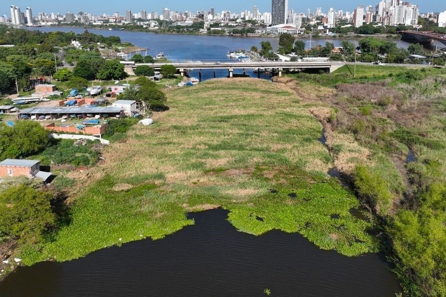 El embalsado del riacho Santa Fe sigue obstruyendo la navegación. Foto: Fernando Nicola