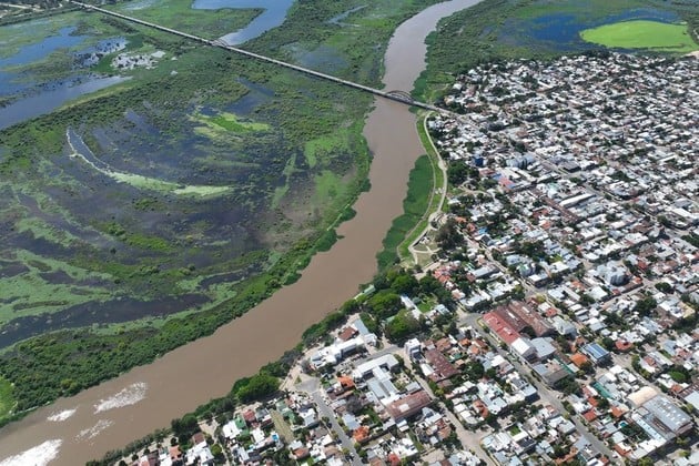 Desde el verano del 2019 que el Salado no superaba los 5 metros en Santo Tomé. Foto: Fernando Nicola