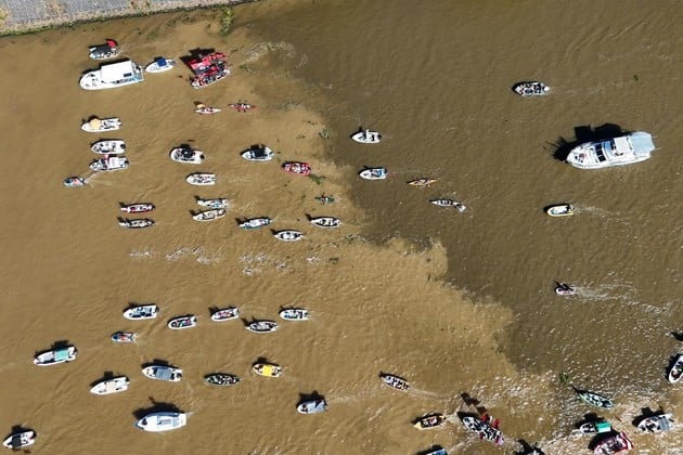 Eso fue justamente lo que pudo observarse con claridad durante la maratón Santa Fe–Coronda en la desembocadura del Canal de Acceso sobre el río Santa Fe: dos tonos conviviendo sin mezclarse del todo, uno más oscuro proveniente de la Setúbal y otro más claro impulsado por el canal, una postal tan llamativa como reveladora del movimiento interno del sistema.