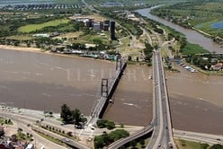 El cambio de tonos se produce a la altura del Puerto de Santa Fe, en la desembocadura del Canal de Acceso sobre el río Santa Fe.