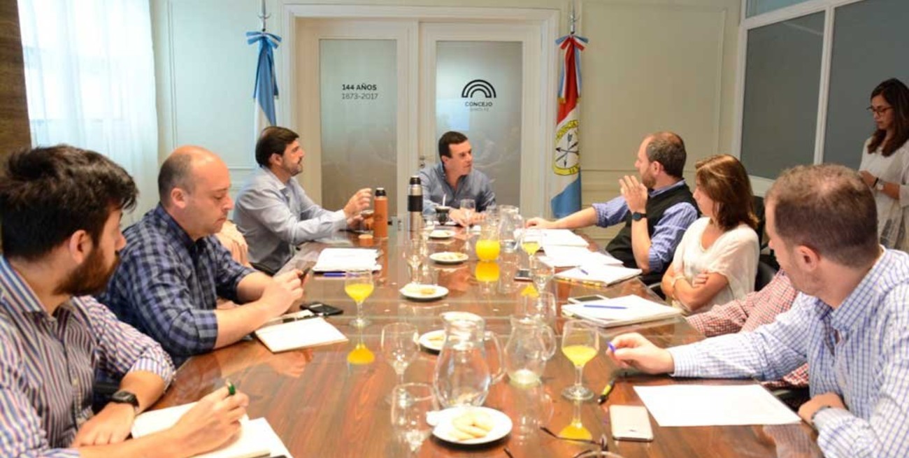La sala de reuniones Agustín Zapata Gollán del Concejo Municipal fue el escenario de una reunión llevada a cabo entre los ediles Ignacio Martínez Kerz, Carlos Pereira, Marcela Aeberhard, Sergio Basile y Franco Ponce De León, junto al secretario de Control Municipal, Ramiro Dall‘Aglio.