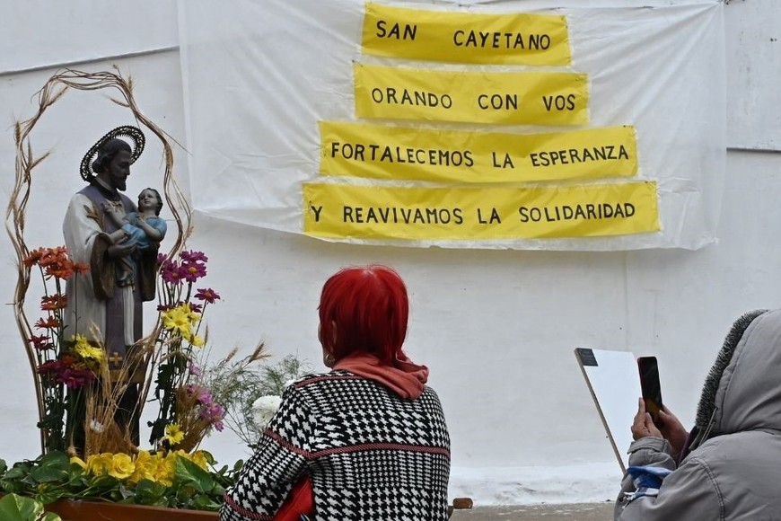 El lema de este año es "San Cayetano, orando con vos, fortalecemos la esperanza y reavivamos la solidaridad". Foto: Flavio Raina.