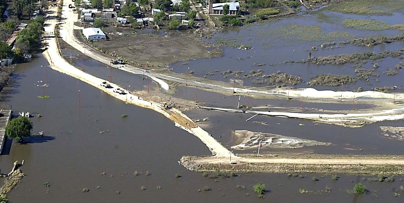 Esta gran crecida del río Salado provocó en 2003 un estado de total saturación de la cuenca, con lluvias no tan importantes pero sí muy recurrentes y muy continuas, por lo que venía saturándose, o sea, venía llenándose todo el espacio del suelo que puede almacenar agua.