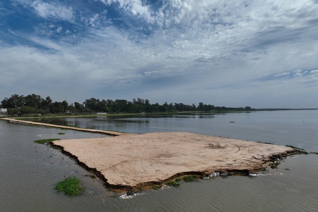 El crecimiento del río Paraná en las últimas semanas hizo que la laguna Setúbal avance y quede a pocos centímetros de superar la plataforma que se elevó en la costa de El Chaquito, y que servirá en un futuro de base para que trabaje la máquina encargada de la Perforación Horizontal Dirigida (PHD) para el Gasoducto Gran Santa Fe.