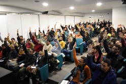 ASOEM Multiespacio Cultural recibió hoy por la tarde a 66 ingresantes de la Municipalidad de Santa Fe, con orden de mérito de Servicios Generales y Mantenimiento y Producción. Esta mejora en la vida laboral de los trabajadores se logró a través de la Mesa Paritaria Local, donde se continúa luchando contra la precarización laboral. El formato de ingreso es de Contrato No Permanente; además, se otorgaron subrogancias y suplementos.
