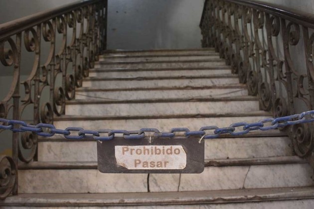 Clausurado. Está prohibido ascender al primer nivel, debido al alto deterioro del edificio. Crédito: Flavio Raina