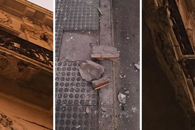 En este contexto, este jueves por la mañana un vecino del centro de la capital provincial se comunicó con El Litoral para advertir por caída de mampostería de una vieja edificación ubicada en la esquina noreste de calle San Martín y Monseñor Zázpe.