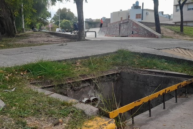 Un registro fotográfico de El Litoral retrata la peligrosidad que genera el gran pozo que quedó destapado tras el robo en una zona donde niños, jóvenes y adolescentes se reúnen a disfrutar de un estilo de parque que no abunda en Santa Fe.