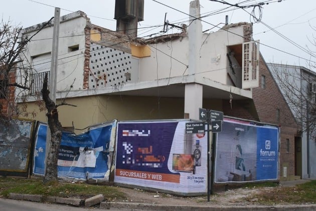 Allí, en la esquina suroeste se lleva a cabo una demolición en un primer piso. Se puede observar a simple vista que está colocado el correspondiente cerco de obra, pero si se pone la lupa en el mismo, salen a la luz ciertas inconsistencias.