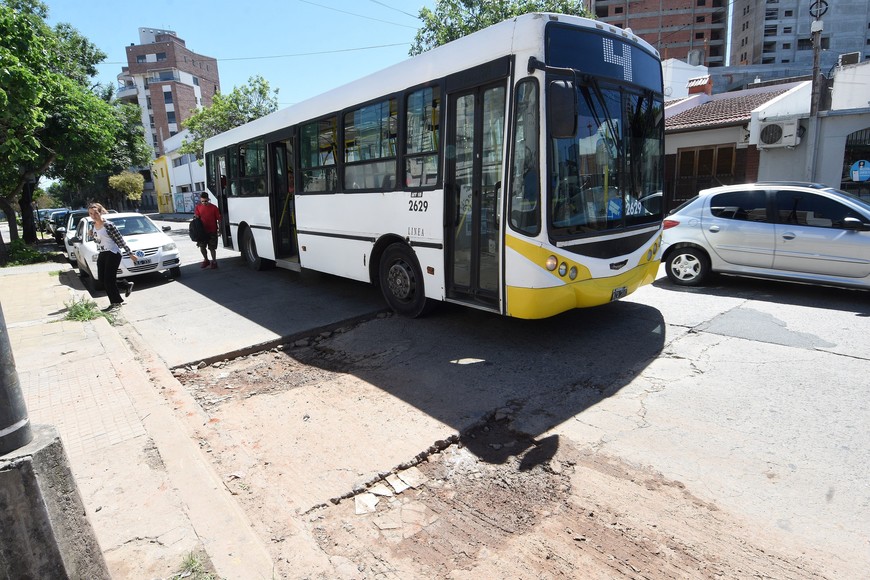En Rivadavia y Crespo, Rivadavia y Primera Junta, en la parada Frente a Plaza Alberdi y en muchos otros puntos del macrocentro -según pudo relevarse-, las calzadas asfálticas en el sector de las paradas están totalmente rotas, incluso con el pavimento corrido, desplazado o directamente ausente. Esto genera un mayor malestar, no sólo para los pasajeros sino para los choferes, pues estos tratan de "esquivar" los baches.