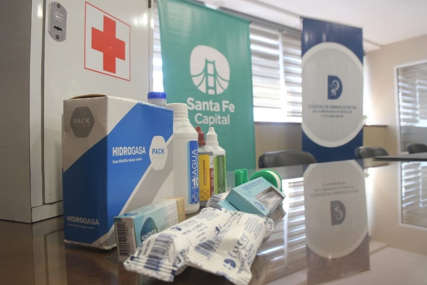 Así son los botiquines que entregó el Colegio de Farmacéuticos. Crédito: Luis Cetraro