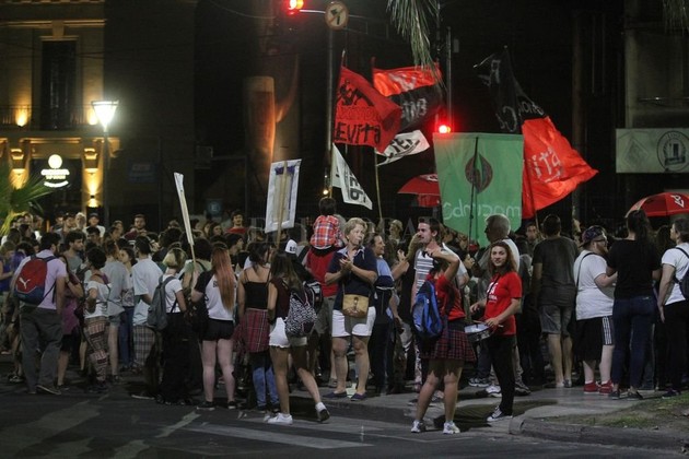 Este lunes por la noche, militantes de distintos partidos políticos se acercaron a Bulevar Gálvez entre 25 de mayo y Rivadavia para manifestarse en torno a la reforma de la ley previsional y a los incidentes ocurridos en Buenos Aires.