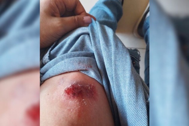 Tras reponerse de la caída, la movilera radial publicó fotos de las heridas sufridas en su perfil en la red social Twitter y relató lo sucedido.