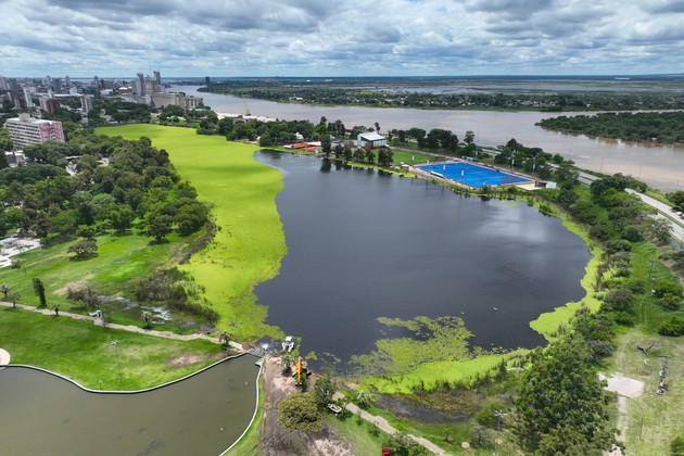 La Municipalidad de Santa Fe continúa su “batalla” diaria contra la vegetación que se había apoderado de la totalidad de la superficie del lago.