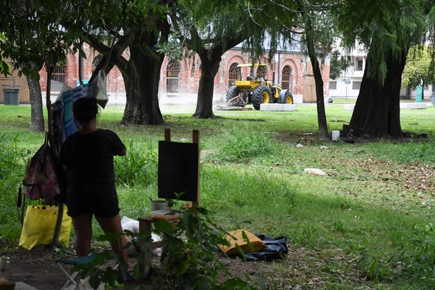 La gente que acampa en el parque pareció quejarse porque el césped está alto y el municipio lo fue a cortar este jueves a la tarde. Crédito: Luis Cetraro