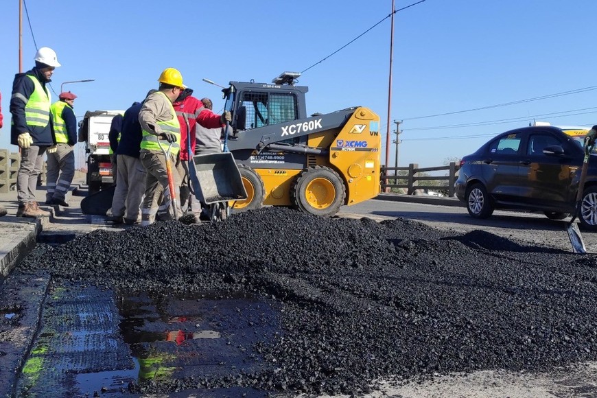 Luego de terminada la nivelación de la calzada sobre ambas manos en el sector deprimido, la semana próxima se colocarán las placas de acero para distribuir el peso del tránsito sobre la junta dañada.