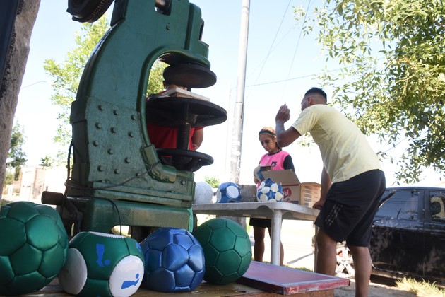 Santa Fe: aprendieron a confeccionar pelotas y armaron un taller en la vereda
