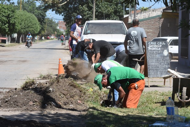 Mientras tanto las cuadrillas de 45 trabajadores con maquinas y herramientas limpiaban las zanjas a cielo abierto, desmalezaban e intentaban retirar los residuos de los micro basurales, entre otras tareas, que se extienden en cada caso por dos semanas, según lo estipulado.